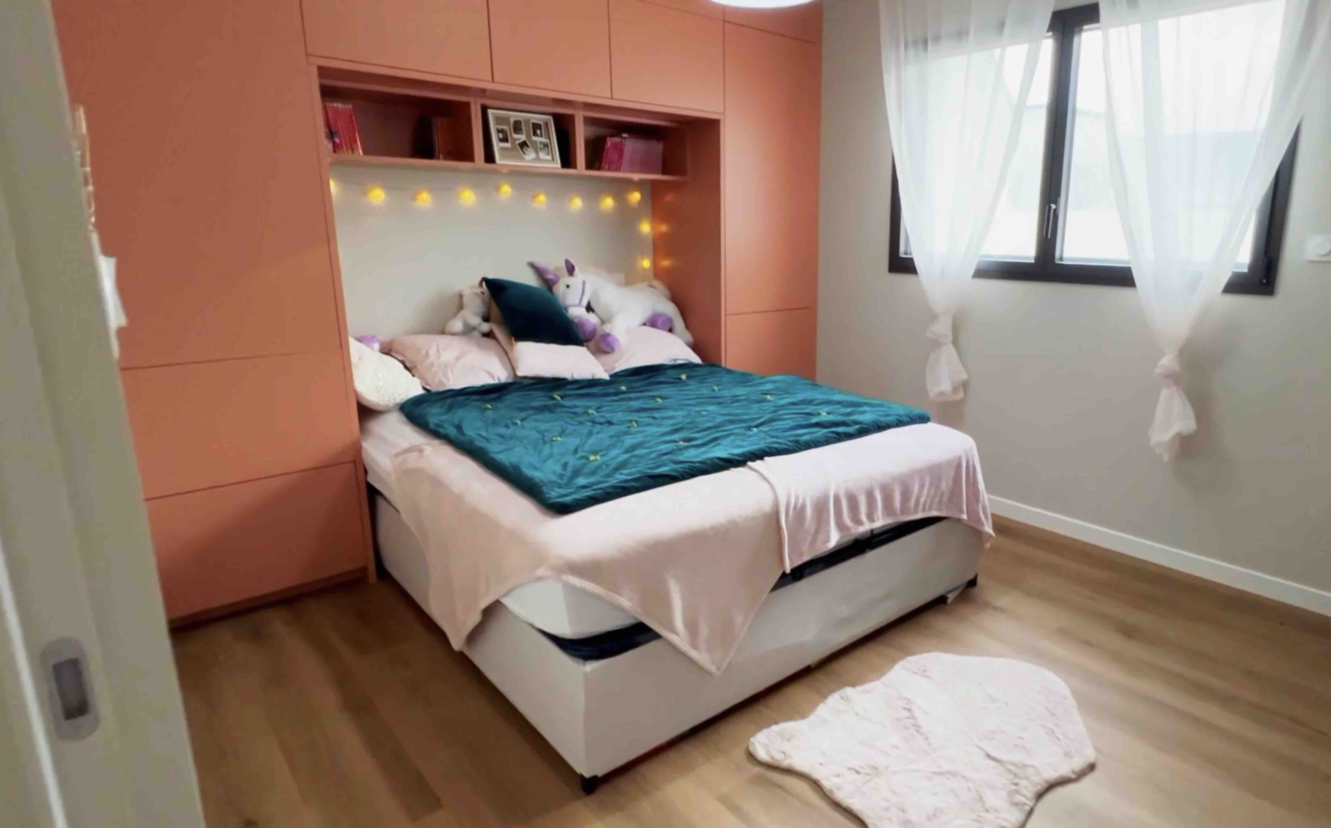 Nous avons conçu ces aménagements avec ingéniosité, créativité et savoir-faire pour révéler la beauté de cet intérieur. La cuisine devient le cœur de la convivialité. Le cellier, conçu avec soin, allie praticité et esthétisme. Les salles de bain cosy favorisent les moments de détente et de relaxation. Les solutions multi-rangement des chambres optimisent l’espace disponible